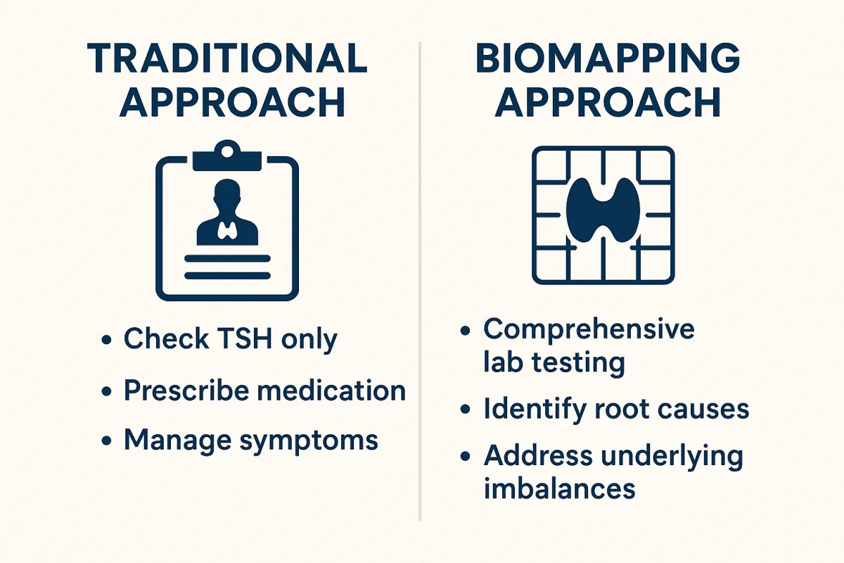 It relies on 1–2 lab markers — usually TSH, maybe T4 — which tell almost nothing about how your thyroid is actually functioning.
